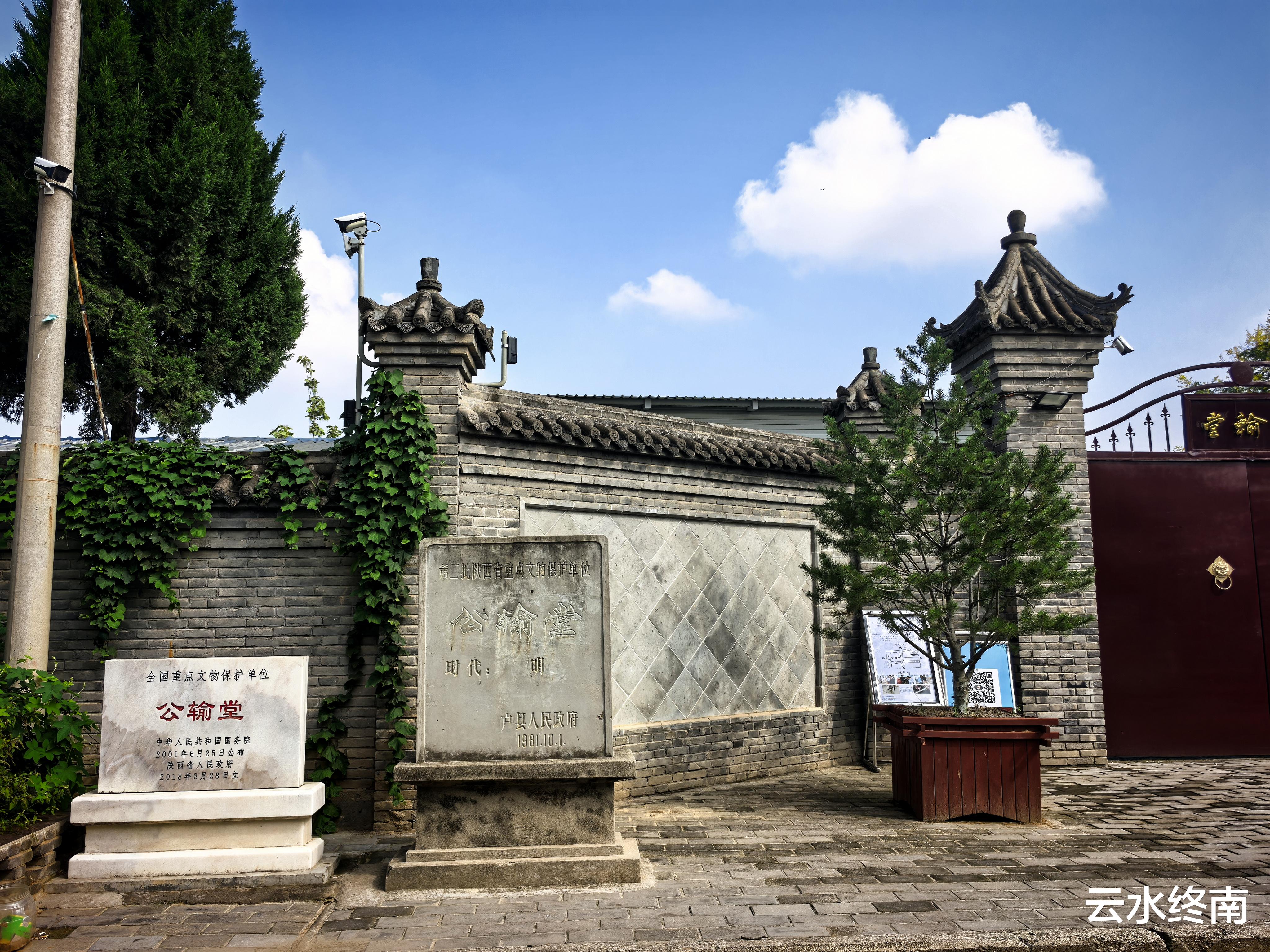 公输堂就在村子巷道中间,大门前有国保碑,进了大门登记免费参观。
