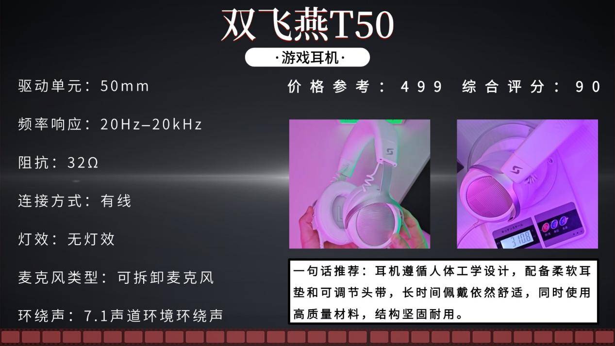 产品介绍:双飞燕T50是野蛮部落系列的有线头戴式电竞耳机,专为追求高性价比的玩家设计。它采用高品质驱动单元,提供清晰、精准的音效定位,特别适合FPS游戏中的听声辨位。耳机遵循人体工学设计,配备柔软耳垫和可调节头带,长时间佩戴依然舒适,同时使用高质量材料,结构坚固耐用。支持3.5mm音频接口,兼容PC、主机和手机等多平台设备,满足不同玩家的使用需求。不过,线材较长,对桌面空间有限的玩家稍显不便。