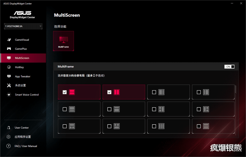 DisplayWidget Center中还提供了分屏功能,分屏比例有很多,用户只需根据自己需要选择适合自己的分屏模式就可以,对于有多屏使用需求的办公、学习、创作用户而言,其简洁的设计逻辑我个人非常喜欢。