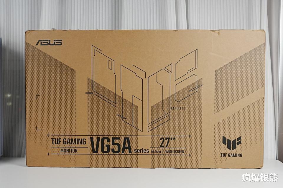 外包装,华硕战杀27电竞小金刚采用GAMING设计风格,简单到只有TUF GAMING LOGO和字符。