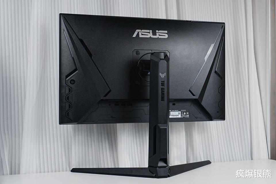 单看显示器背板的时候你可能觉得电竞元素并不突出,但是当搭配上支架后,华硕战杀27的电竞后劲才真的上来,整机线条硬朗,有种黑武士的赶脚。