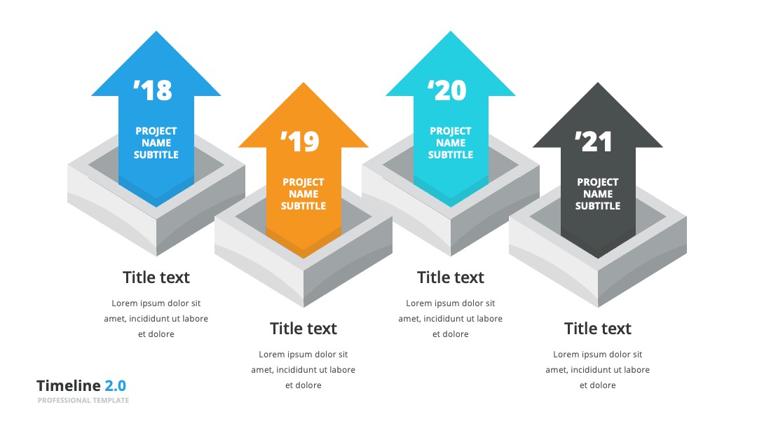 四、使用小贴士修改时间节点:直接双击时间轴上的年份(如 “'18”“'19”),输入实际项目年份即可,立体效果会自动保留;