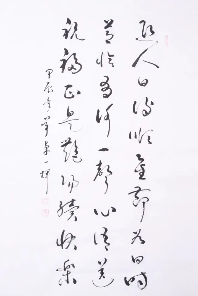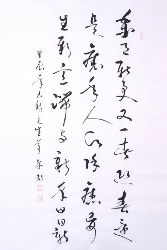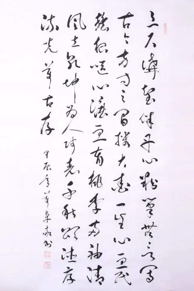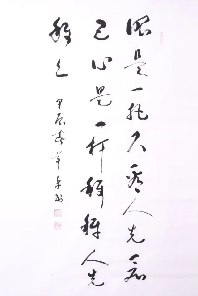 从记事起,由初悟喜欢书法到醒悟着迷书法,三十多年来,至始至终深挖文字细微、粗狂、严谨、自然、均衡的美感规律;以露、藏、中、偏的运笔风格,提按、使转、顿挫的自然法度,心手双畅研习领悟;用纯、真、儒雅、流畅、刚柔并济、入古求新的理念;在锋须往来之际,作天质自然的折转,笔墨畅志、心手一体,以“尽心”“净心”“静心”之势,导运笔墨,在有法的体系内,作无法的极致表现。放手写心,只为了传承惠及子孙;只为了写好中国字,做好中国人。