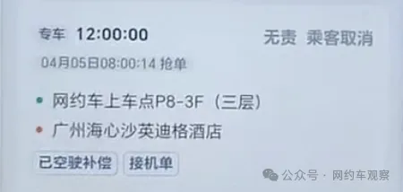 据网约车观察了解到,滴滴的预约单空驶补偿,是滴滴针对抢到预约单的司机在乘客出发前1小时取消订单后,司机获得的额外补偿。