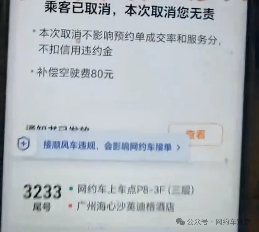 还有这名广州的专车司机也因为乘客的取消订单获得了80元的空驶补偿。