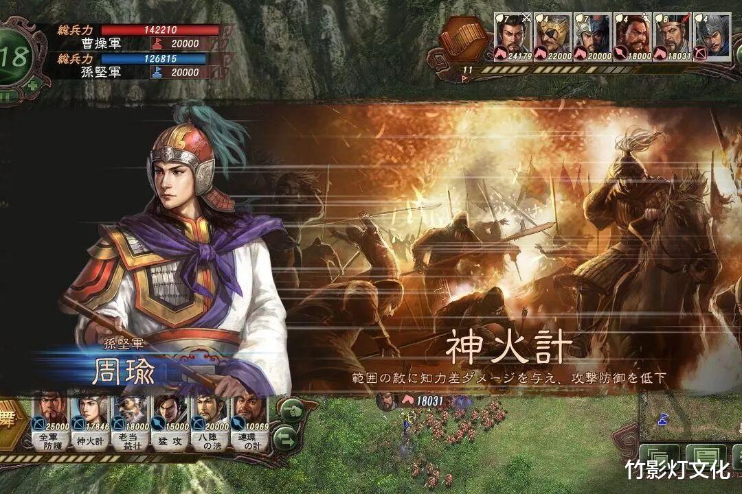 周瑜的“神火计”,范围精神攻击,并降低攻击、防御,能够造成毁灭性打击。