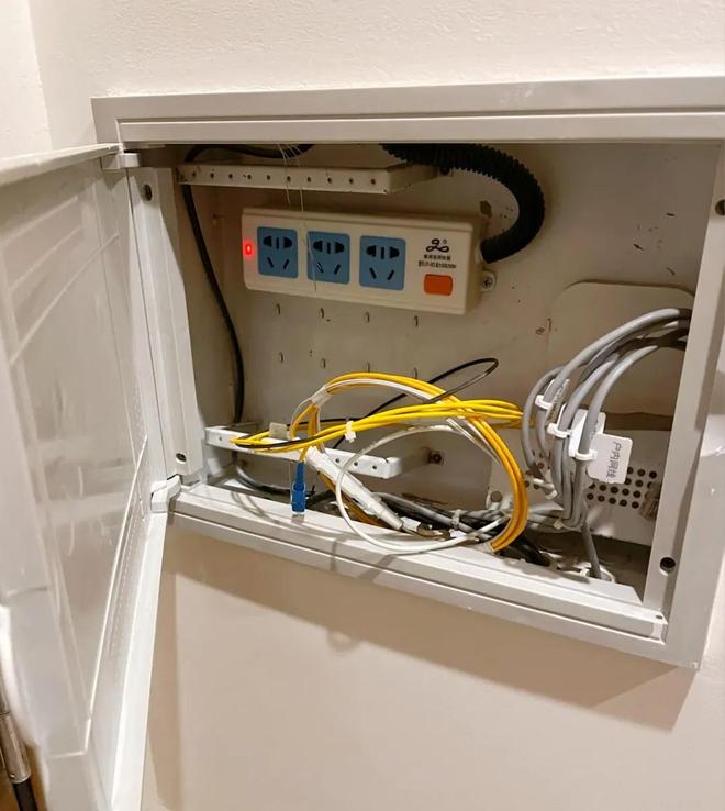 在这里要提醒大家,在弱电箱里一定要预留一个电源,并且不要装插座,而是装上插排,这样才方便后期网络设备的用电。