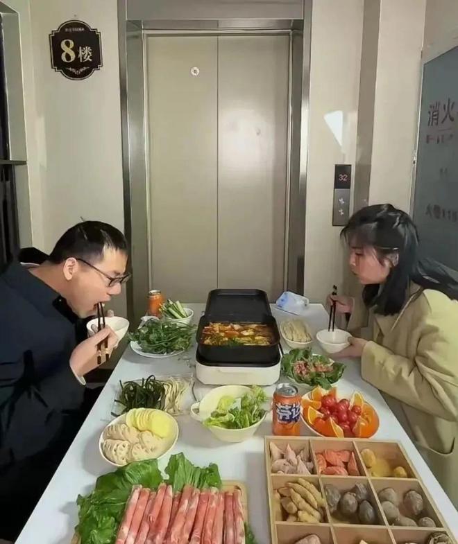 有很多一梯一户的业主,就在入户门口吃火锅,点火锅外卖时,外卖员出电梯后就会看到业主在公区吃火锅的。
