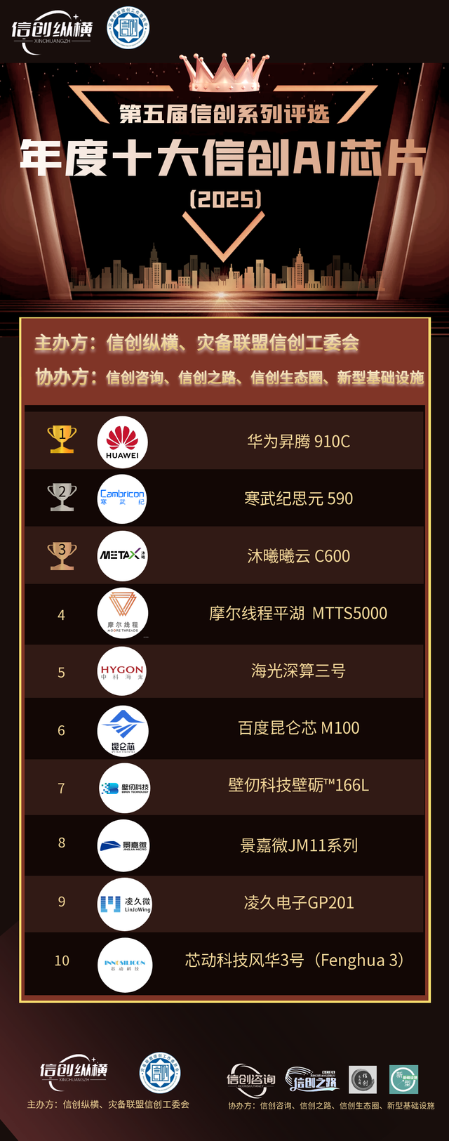 我们希望通过信创纵横等平台以及信创社群展示这些优秀的信创芯片产品,让更多的信创用户了解并能帮助其完成“真替真用”,也为加快我国信创产业的发展尽一点绵薄之力。鉴于此,前不久,信创纵横携手北京信息灾备技术产业联盟信创工委会(简称:灾备联盟信创工委会)联合举办了第五届信创系列评选之年度十大信创CPU/AI芯片产品的评选。此次评选活动,也得到了信创咨询、信创之路、信创生态圈、新型基础设施公众号等协办方的大力支持。在此,一并表示感谢!