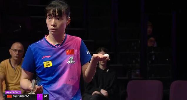 关键时刻,石洵瑶的发球被裁判罚了一分,钱天一11-10拿到第二局局点,之后再得1分,12-10逆转赢下第二局,将大比分追至1-1平。