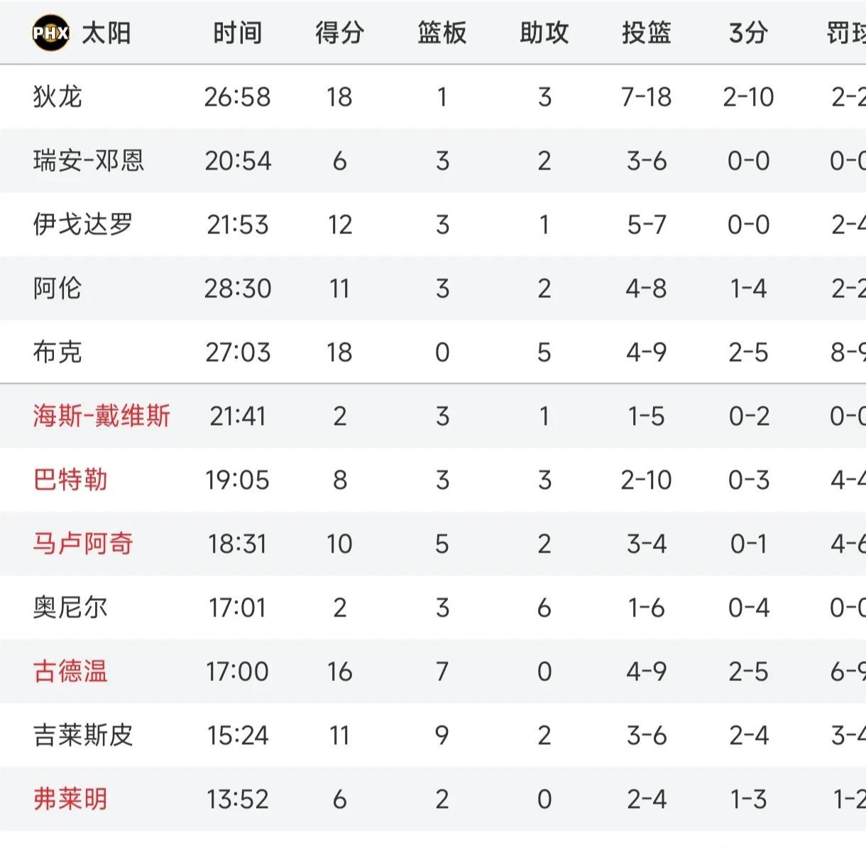 随后到了第四节,双方121:121打平,最终进入加时赛,最终太阳132:127逆转战胜篮网。