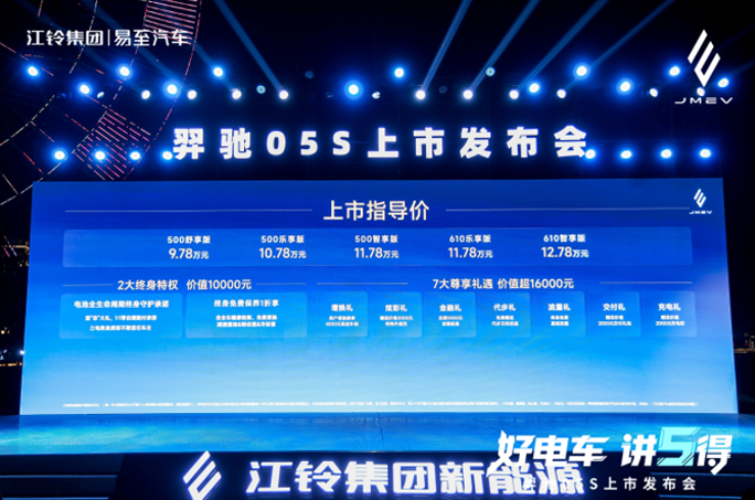 2025年10月16日,南昌之星摩天轮下的江畔,江铃集团新能源旗下易至汽车品牌首款A+级纯电SUV——羿驰05S正式上市。在主题为“好电车,讲5得”的沉浸式发布会中,这款被寄予厚望的“家庭全能SUV”以9.78万-12.78万元的上市尊享价,正式闯入竞争已趋白热化的10万级紧凑型纯电市场。