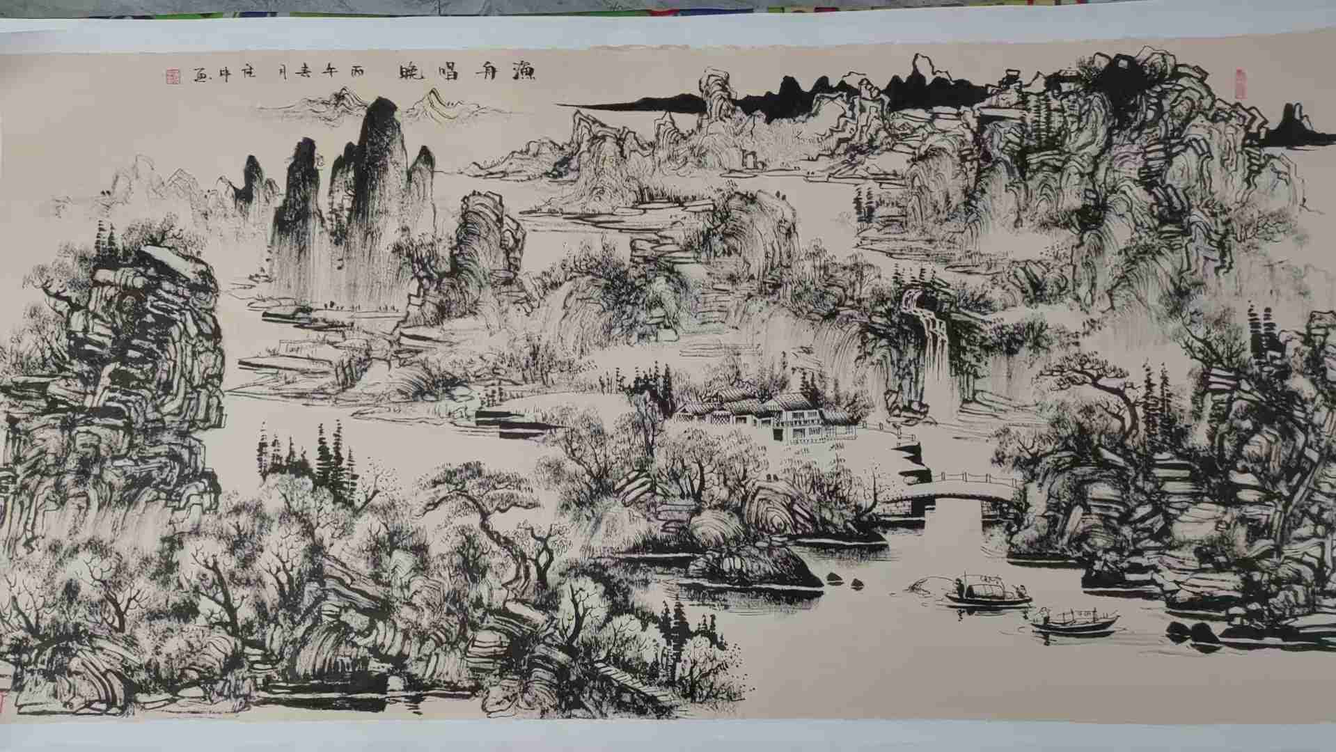 黄德中:男,汉族,笔名黄墨,号炎黄江夏,生于1965年,江苏省连云港人。毕业于中央美院高研班,国家一级美术师,黄宾虹书画艺术研究有限公司院长,黄宾虹嫡系传人,中国书画家协会副主席,作品巜湖光帆影》荣获全国第九届书画大赛奖!《庐山观瀑图》荣获张大千诞辰一百周年手绘艺术奖!江苏省中外艺术教育专业委员会会员!彩墨山水画院院长,中国山水画系硕士研究生,南派焦墨山水创始人,四墨合一开拓者,异形笔首创。独特精神思想,个性随笔端,描绘内心灵魂的意境!百度推广权威性收藏艺术家!作品一万伍一平尺由人民大会收藏!雅昌拍卖焦墨山水春夏秋冬三十二成交,多家媒体报道并收藏!