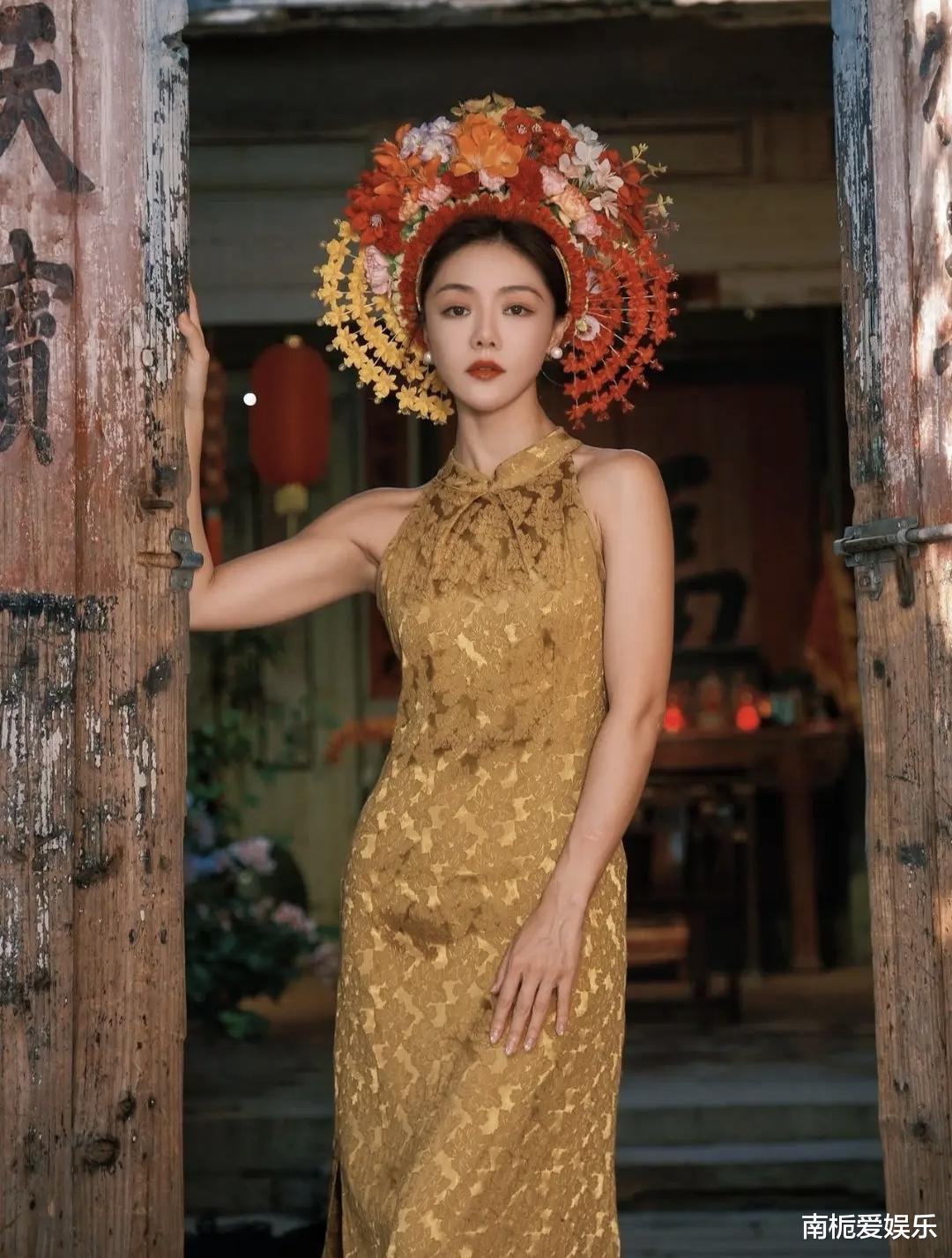 近日,演员邓家佳一组身穿金旗袍、头戴簪花围的造型照片在网络上迅速走红,引发全网热议。不同于以往的时尚写真,这一次她将目光投向中国传统服饰文化,以泉州蟳埔女非遗头饰“簪花围”为灵感,搭配一袭哑光质感的鎏金旗袍,瞬间将大众拉入一幅流动的东方画卷。照片一经发布,便登上热搜榜单,网友纷纷感叹:“这才是中国女人该有的高高级美。”