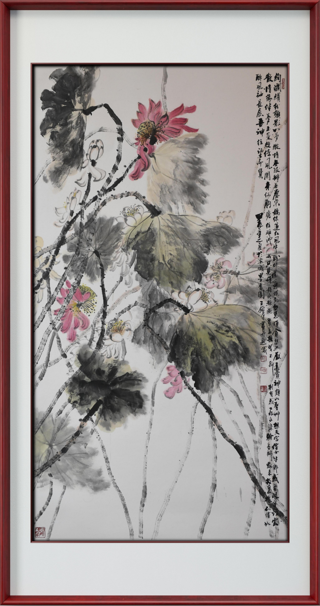 主要代表作:《毛泽东诗词长卷书法》、《中国75周年国庆献礼诗词书法》、《黄山胜景题画诗书法》、《背影》、《黄山云海图》、《盘江大桥》、《黄山梦幻图》、《黄山日出图》、《静观风云图》、《金佛夕照图》、《潼南精神》等经典名作。部分作品版权被人民大会堂、中南海等中央机构广泛应用于国宾礼。“荷”为贵系列作品巡展150多个国家,被全球权威媒体誉为世界艺术殿堂顶级大师,入选全球百强艺术家榜、中国最具收藏价值艺术家榜、荣获国家功勋模范艺术家称号、中国十大杰出艺术人物、世界华人十大杰出艺术家、中国文化走向世界国家形象人物、载入《世界美术教育史》的中国当代唯一巨匠级艺术家。作品被人民大会堂、国家博物馆、中国美术馆、卢浮宫、天安门、英国皇家艺术学院等机构永久珍藏,并获得中华人民共和国ISC2000艺术品司法权威评估及国家信息中心艺术品存证备案。2024年12月7日受邀参加中央军委全球武官团年度文化外交国宴,同年被联合国教科文、意大利总理办公室、意大利文化部、佛罗伦萨美术学院、罗马美术学院、都灵美术学院及中国八大美院联合邀请为:中意文化艺术交流展中方评委。人民日报、《环球人物》杂志、中央电视台、《中华英才》杂志、人民代表报、中国国际教育电视台、中华网、央视网、新华网、中国新闻联播网、中国新闻网、美国时代周刊、纽约时报、英国卫报、阿联酋国家新闻等数万家全球权威媒体发表名家专栏作品及宣传报道其杰出成就。