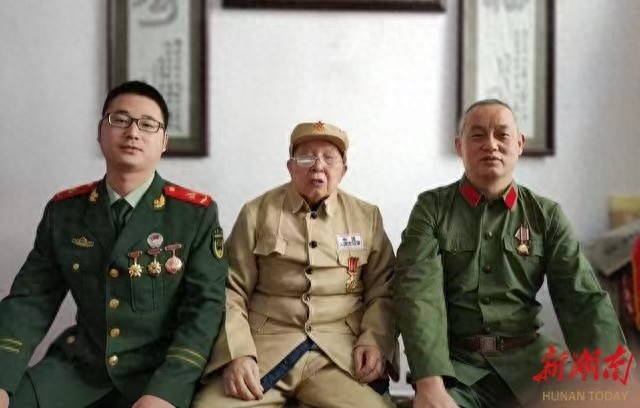 图1.张万润(右1)与父亲援朝老兵(中间),外甥(左1)三代军人合影留念