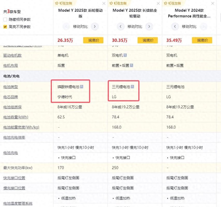 此外,不同技术路线的电池也能够满足不同消费群体的需求。宁德时代的磷酸铁锂电池以安全性著称,而LG的三元锂电池则更注重能量输出管理。这两种电池各有优势,特斯拉通过差异化配置,满足了不同消费者的需求,也体现了其对市场细分的精准把握。