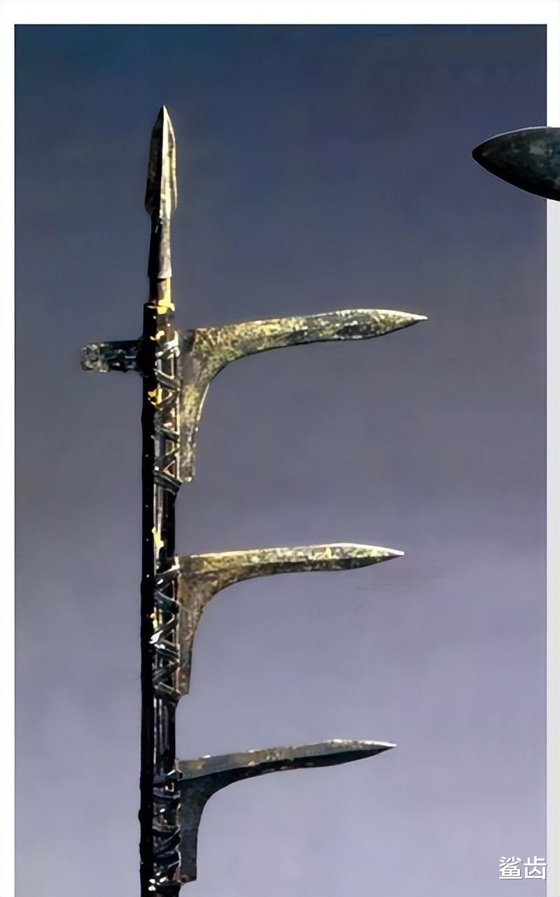 不同于直刺的矛或劈砍的斧,戈是冷兵器时代的"多功能武器"。其平头横刃的构造堪称力学奇迹——前锋如鹤喙般尖锐利于啄击,侧刃呈新月状可勾割马腿,6-8寸的青铜戈头装在3米长的柲柄上,形成令人胆寒的"勾股弦"组合。考古发现显示,商代匠人已掌握在戈援与胡部设置三穿四孔的复合绑缚技术,使得戈头能在剧烈厮杀中纹丝不动。战国时期出现的长胡多穿式戈,胡刃长度甚至超过援部,这种进化印证着"一寸长一寸强"的战场法则。