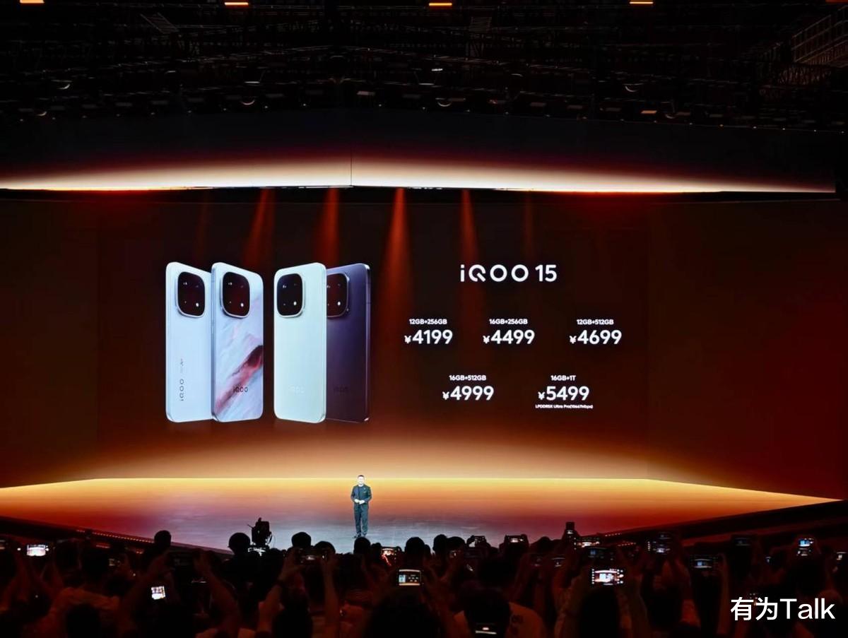 价格方面,iQOO 15共推出五个版本:12GB+256GB版4199元,16GB+256GB版4499元,12GB+512GB版4699元,16GB+512GB版4999元,16GB+1TB版5499元,十周年典藏版同价5499元。10月20日起在vivo官网、京东、天猫等全渠道开售,线下专卖店与授权门店同步发售,旷野配色将于10月31日10点开售,限时享最高24期免息福利。