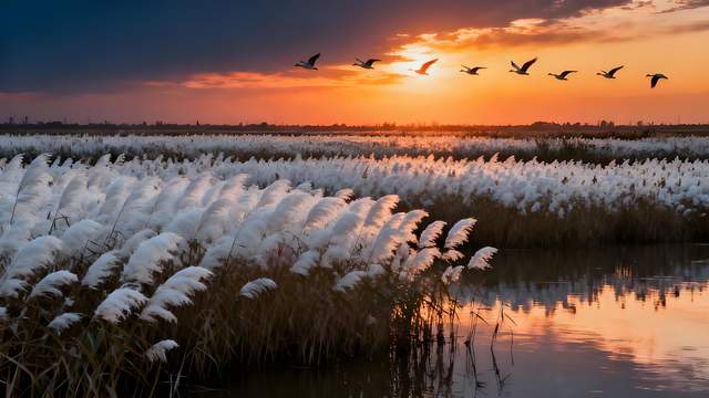 银滩湿地的秋色,是黄河畔最温柔的诗篇。十月的湿地芦苇荡随风轻摇,芦花似雪飘散在蔚蓝天空下,水面如镜倒映着岸边杨柳与远处山峦。沿着木栈道漫步,看夕阳为芦苇镀上金边,听黄河水流淌的低语,恍若置身 “落霞与孤鹜齐飞,秋水共长天一色” 的水墨画卷。偶有候鸟在此停歇,翅尖划破水面,激起层层涟漪。傍晚时分,游人渐稀,只剩芦苇与秋风缠绵,将白日的喧嚣轻轻抚平,留下满径清辉与诗意。