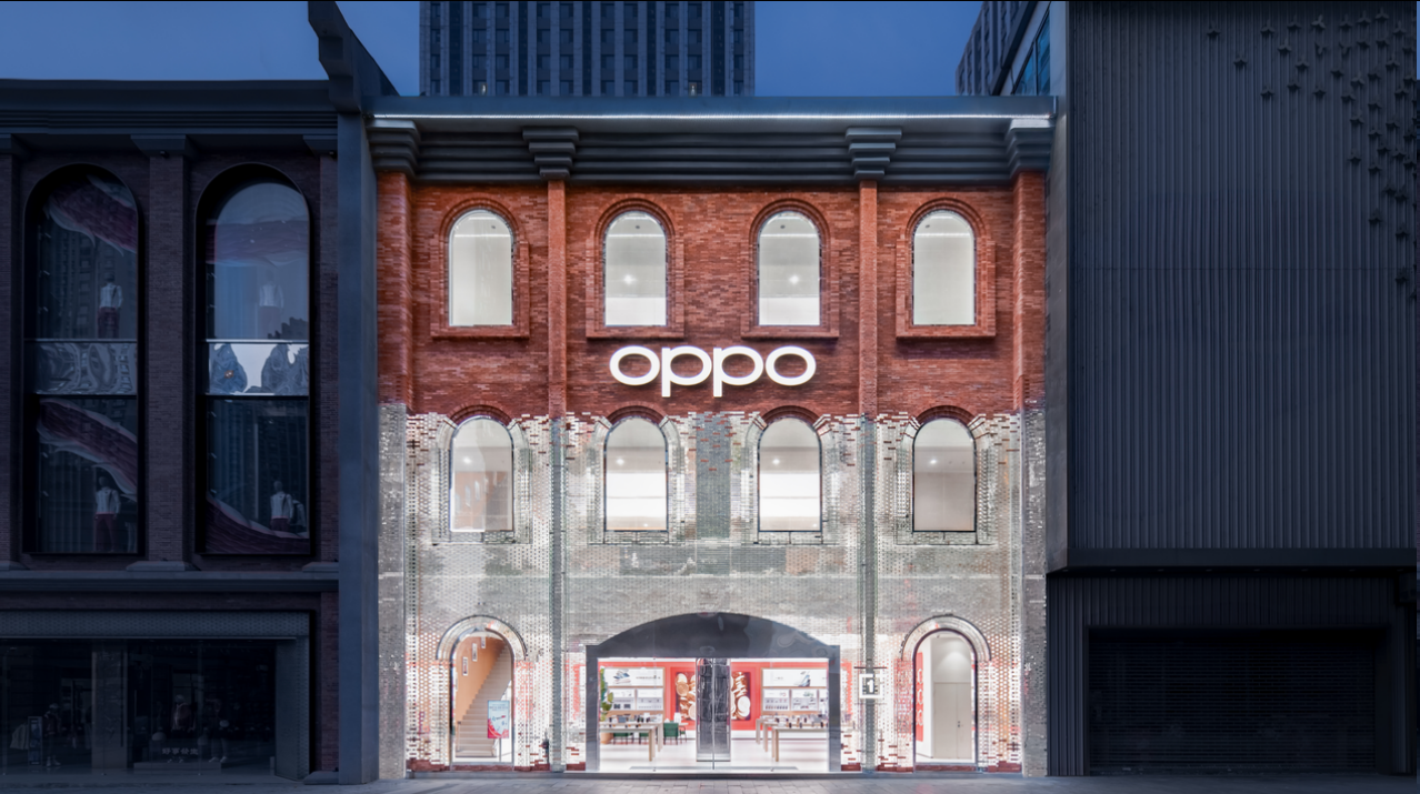 他们与天津大学建筑设计院、20 余位专家共拟修复方案,并邀请专业文物修缮团队参与;内部以碳纤维等新材料加固结构,外立面沿用披麻灰等传统工艺;甚至将 OPPO logo 处理为“悬空”,避免破坏墙面,真正做到了在现代的同时不破坏历史该有的记忆。