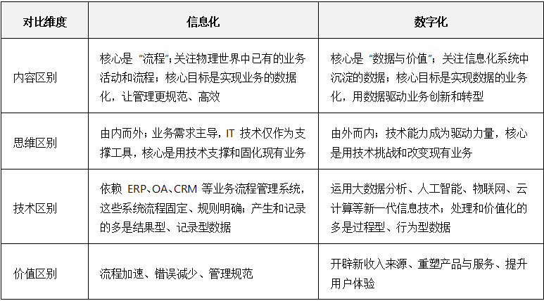 让我们回到最初的问题。信息化和数字化的区别,现在你是否能清晰地区分了?