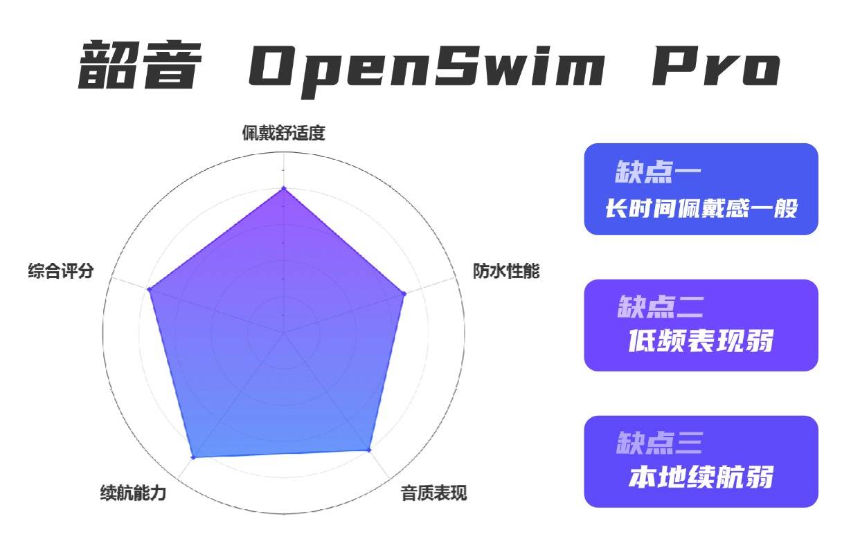 韶音 OpenSwim Pro 是为水下运动量身定制的骨传导耳机,防水性能与水下音质稳定性尚可。对于游泳、冲浪、潜水等爱好者来说,它是一个高度专业化的选择。