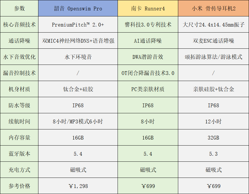 对于追求全场景适配、希望在跑步、骑行、游泳等多种运动中都能获得稳定体验的用户来说,南卡Runner 4的综合表现会让人印象深刻;如果预算有限且主要在陆地运动中使用,小米骨传导耳机2是一个稳妥的选择;而对于轻度游泳爱好者,韶音OpenSwim Pro是较为契合的伙伴。