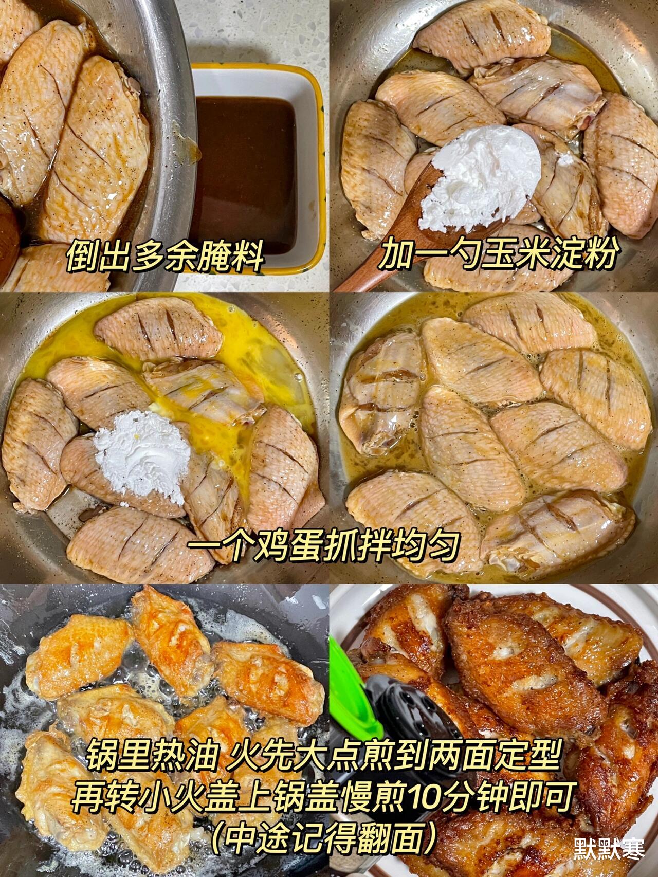 鸡翅别切太小,否则煎完缩成鸡米花;