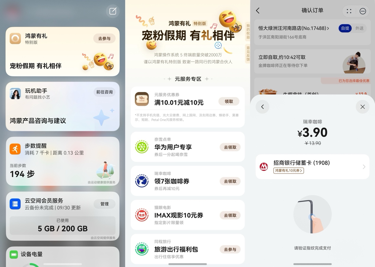 出门时我喜欢轻装简行,一部手机就足够应对所有需求。逛累了想喝点什么解渴时,我会顺手右滑进入负一屏,在“鸿蒙有礼特别版”活动中领张优惠券,在瑞幸元服务下单就能直接立减,一杯生椰拿铁只要几块钱。如果晚上想看场国庆档热门电影放松,打开猫眼电影元服务同样支持用券抵扣。这份便捷从9月30日开始,将伴随整个十一假期。让假期的每一天都值得被好好对待,每个平凡时刻都值得用心收藏。