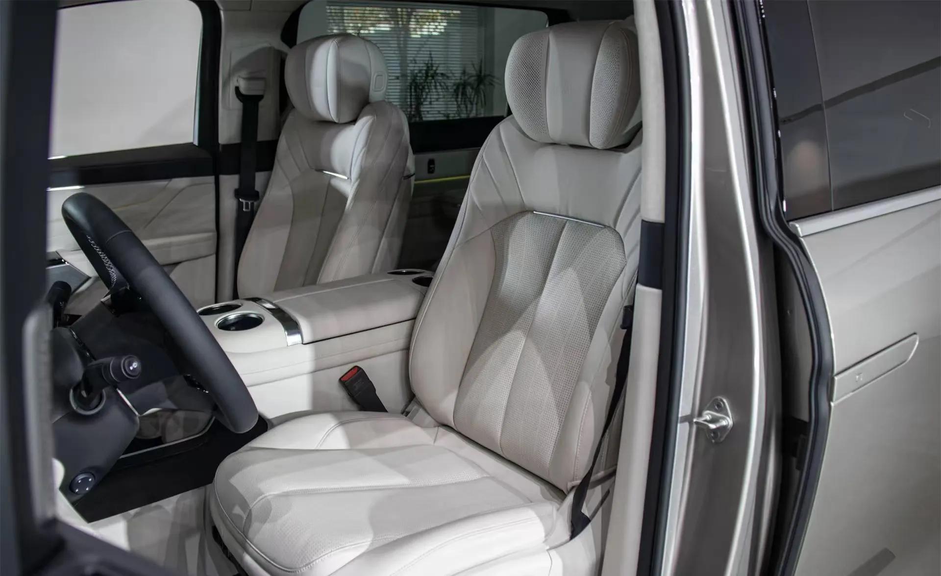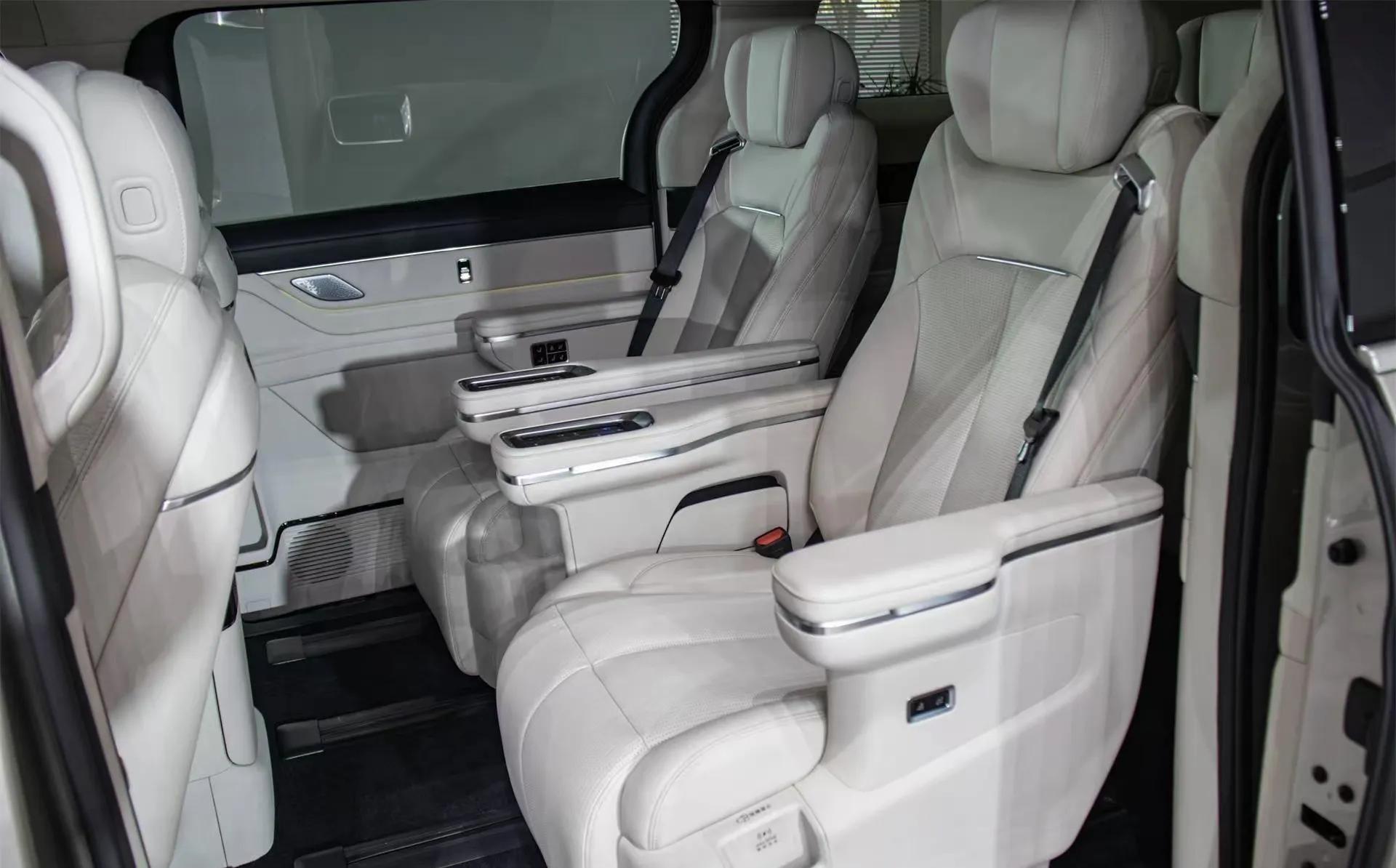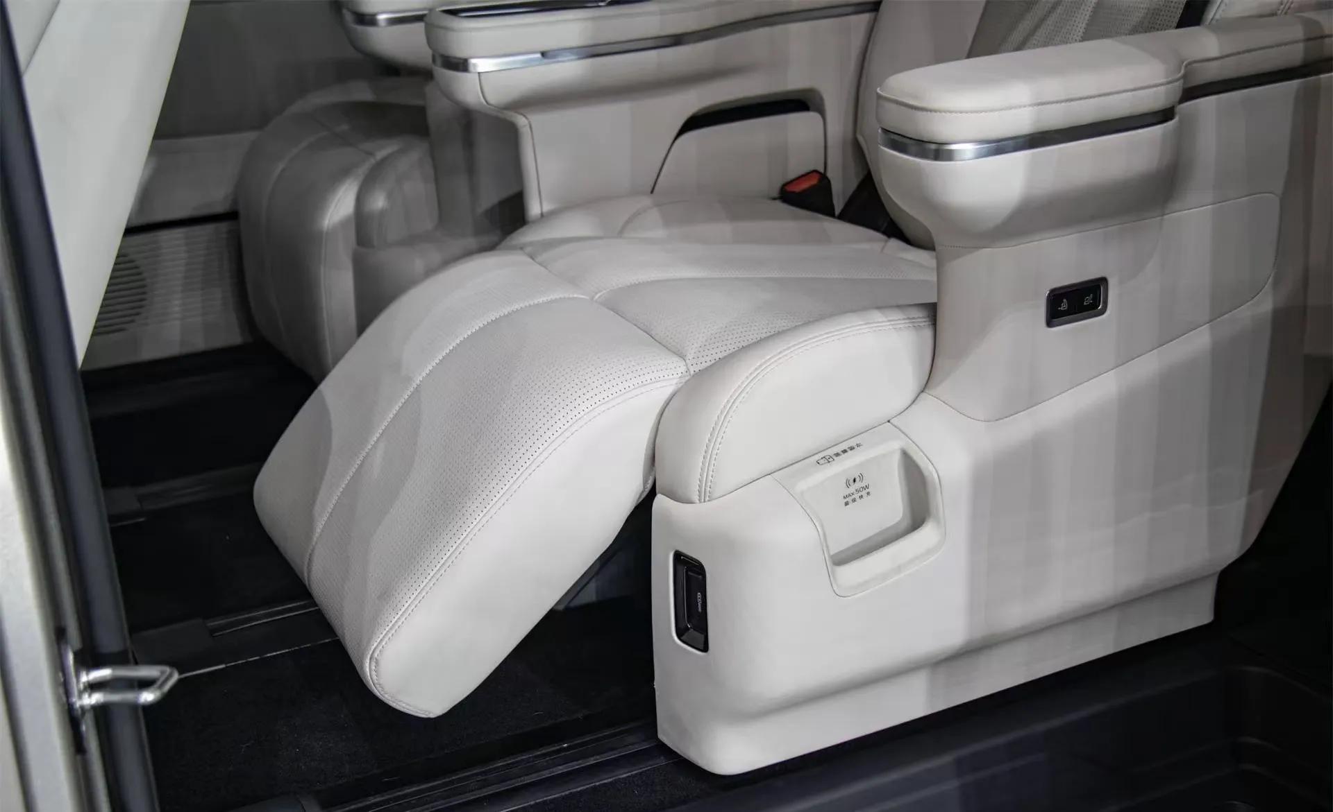 全车座椅通风加热,主副驾和二排还有8点按摩,再加上17.3英寸吸顶屏、9.1L冷暖冰箱和27扬声器音响,长途坐车跟躺家里一样舒服。