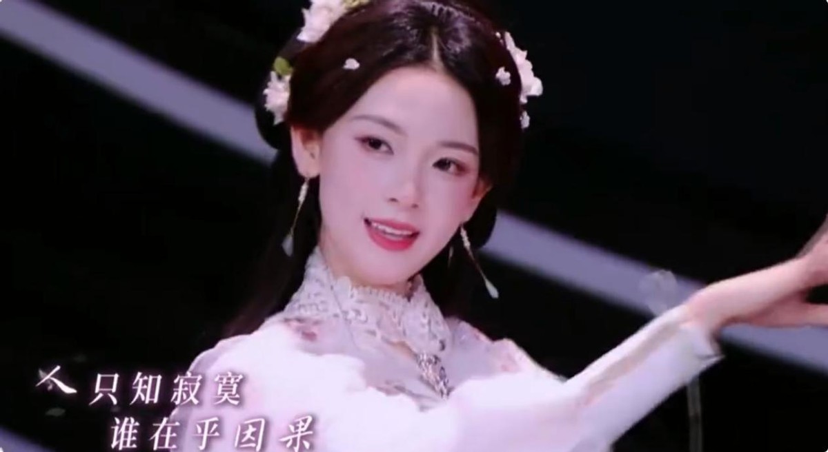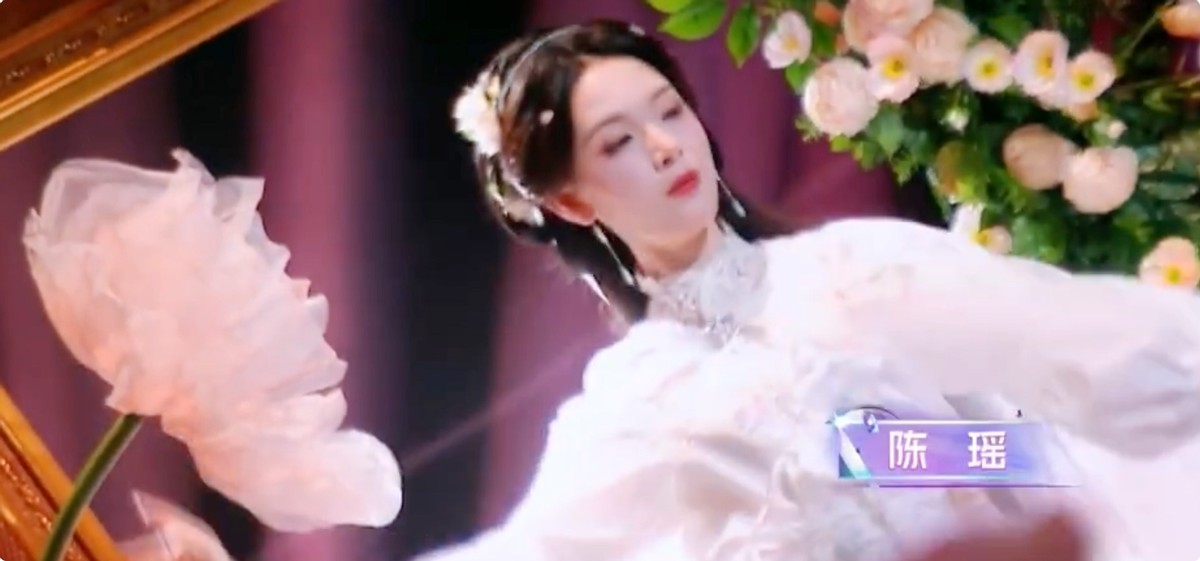 陈瑶本身就是五官精致的古典美人,扮上古装更是回到了舒适区,节目《春日花招》中,陈瑶化为绚烂绽放的阇提花,身姿挺拔,曲线曼妙,定格的那一刻,她就好似有了戏曲演员的功底,身段漂亮,轻抬胳膊,肢体柔软,动作细节中也难掩舞蹈功底。