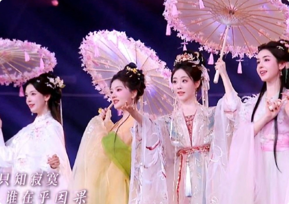 当然,四位绝色美女的同框,才是这一场表演的精髓。镜头流转,短暂在某个人的身上停留,而每一次,观众都是被美了一跳又一跳,只有一曲结束,四人同框,美到让人一时之间不知道看谁才好。