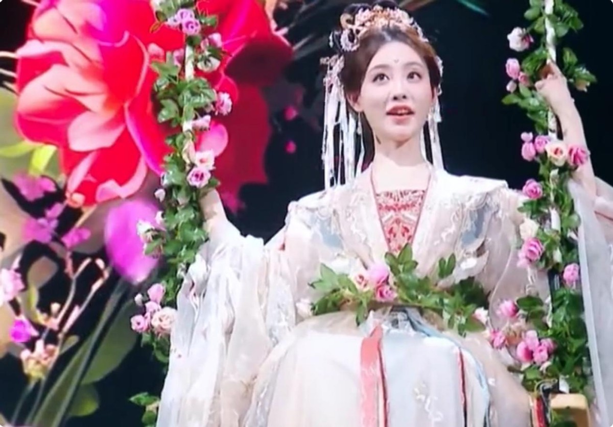 但即使如此,观众还是被祝绪丹的美貌狠狠拿捏,她一身重工的明制礼服,凤钗流苏,坐着秋千从天而降,化身春日使者望仙花。