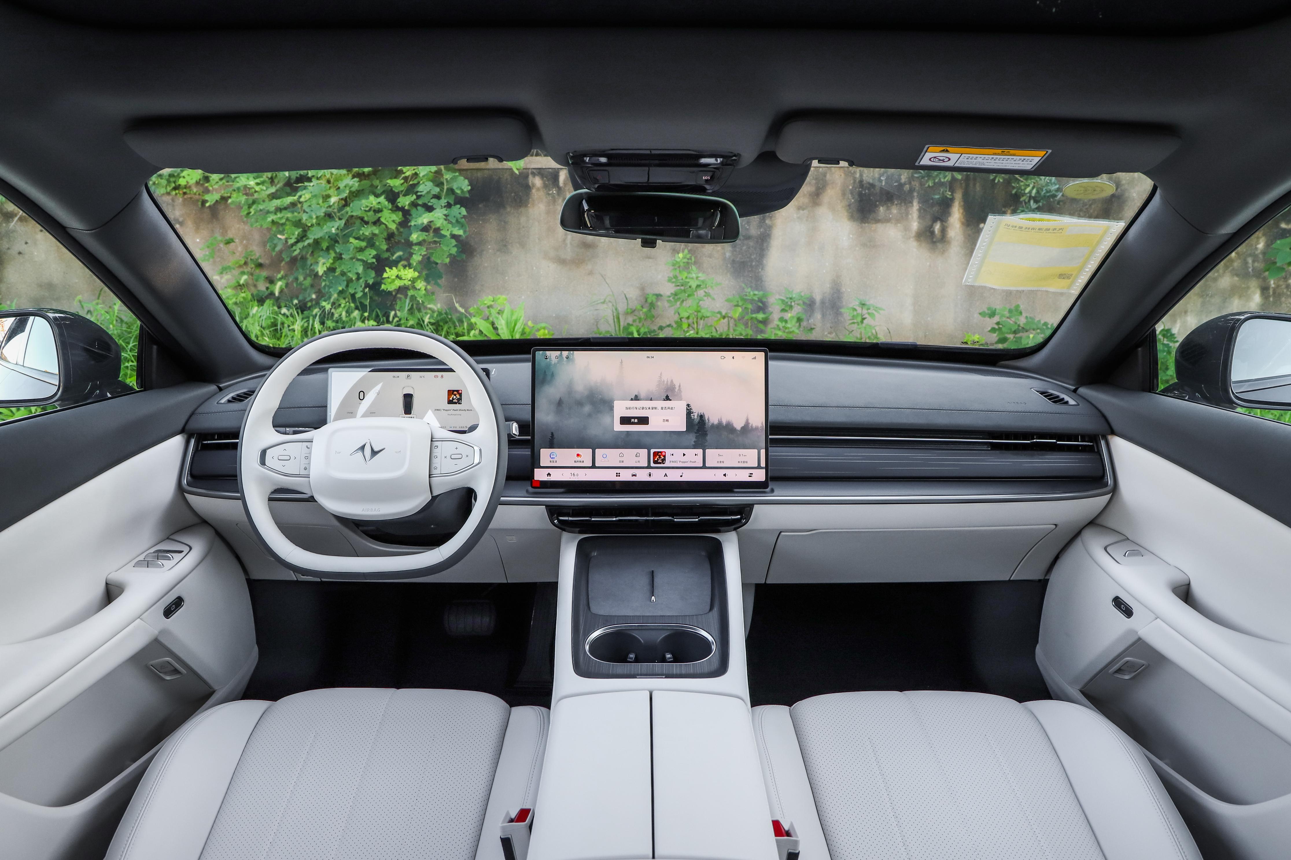 (二)内饰:简约不简单,屏幕清晰还不卡坐进驾驶座,第一感觉是 “不杂乱”。中控台没有堆太多按键,只有 15.6 英寸中控屏和 10.25 英寸仪表屏,边框都很窄,看着就像两块悬浮的平板,科技感很足。