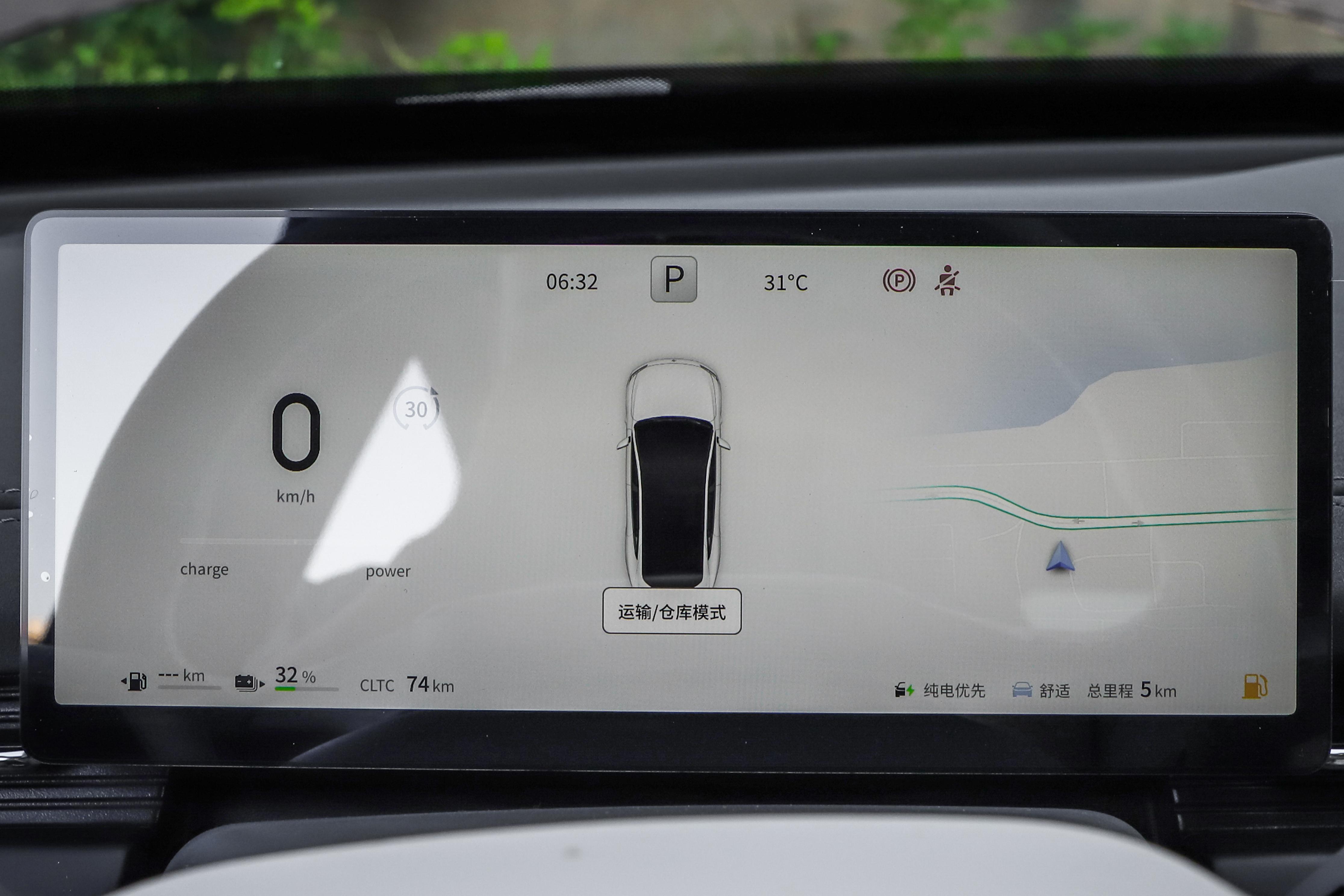 仪表屏能跟着驾驶模式变样子:切到 “舒适模式” 是清爽的蓝色,信息分区域显示,车速、续航、导航路线一目了然;切到 “运动模式”,屏幕瞬间变成红色,还会出现模拟转速表,一下子就有了 “要开快” 的氛围。周末跑山时,我把导航投到仪表屏上,眼睛不用离开前方就能看路线,比一直瞟中控屏安全太多。