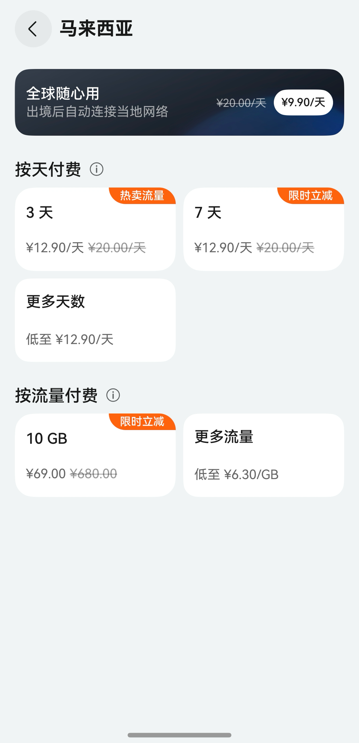 出国后怎么使用网络也不用愁,鸿蒙版支付宝和天际通都可以买境外流量,选择目的地后,就能购买按天和按量计费的“流量包”,输入自己的手机号就能购买并使用了!