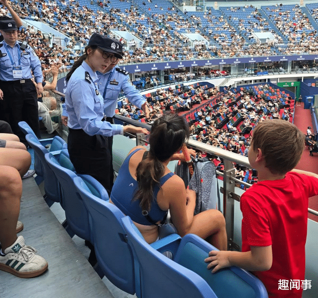 坐在她身旁的混血小男孩吓得脸色发白,悄悄拽了拽她的衣角:“妈妈,别喊了……”却被女子一把推开。裁判多次举起左手示意安静,安保人员也上前低声劝阻,她却变本加厉地跺脚尖叫,甚至对着工作人员做出挑衅手势。