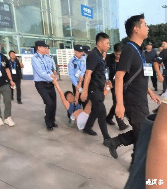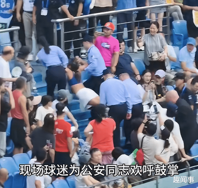 这场闹剧持续了近90分钟。直到4名工作人员将她抬离看台,全场响起如释重负的掌声。而被女警抱走的小男孩,始终低着头不敢看人。