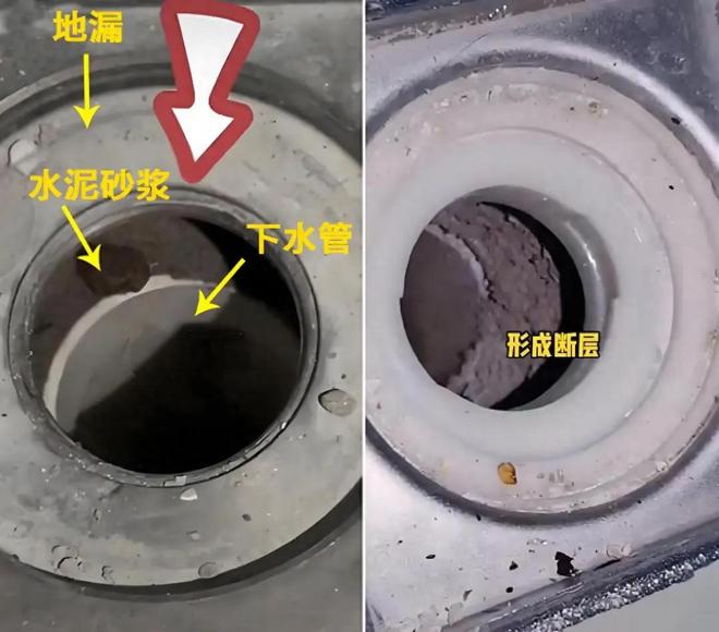 为此,就特意打开地漏盖检查,结果还真如防水师傅所说,地漏是直接放在水泥砂浆层上,没有套到下水管道里。