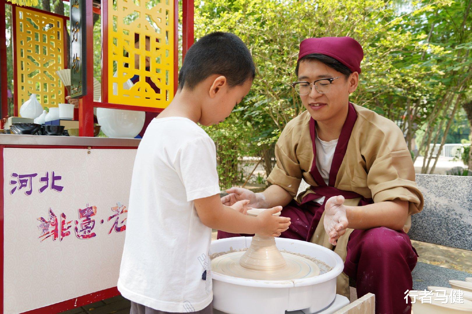 现场除了表演区外,还设有非遗展位、广宗柳编、威县土布纺织技艺、邢窑陶瓷烧制技艺、糖画、剪纸等一系列体验性项目。通过台上台下的双向互动,增加游戏性、趣味性、娱乐性,让传统演出与非物质文化遗产项目紧密结合,让观众及游客耳目一新、大饱眼福!邢台市民 李龙说:“今天就带孩子过来转转看看,了解一下邢台的非物质文化遗产,比如说邢窑白瓷,还有吹糖人之类的,让孩子了解一下邢台的文化底蕴。