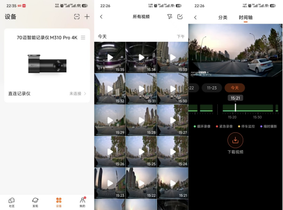 通过手机 APP 连接记录仪热点,这个过程是零流量消耗的,你可以实时预览画面,就像把记录仪的画面搬到了手机上,随时随地查看行车情况。还能轻松下载紧急视频,在遇到突发情况时,能第一时间将重要视频保存到手机。它的时间轴相册功能更是厉害,就像一个智能的“视频导航仪”,让用户通过滑动即可定位关键事件前后10秒录像。与传统插拔内存卡的操作相比,效率提升了300%,大大节省了查找视频的时间,让重要证据能够快速获取,方便又高效。