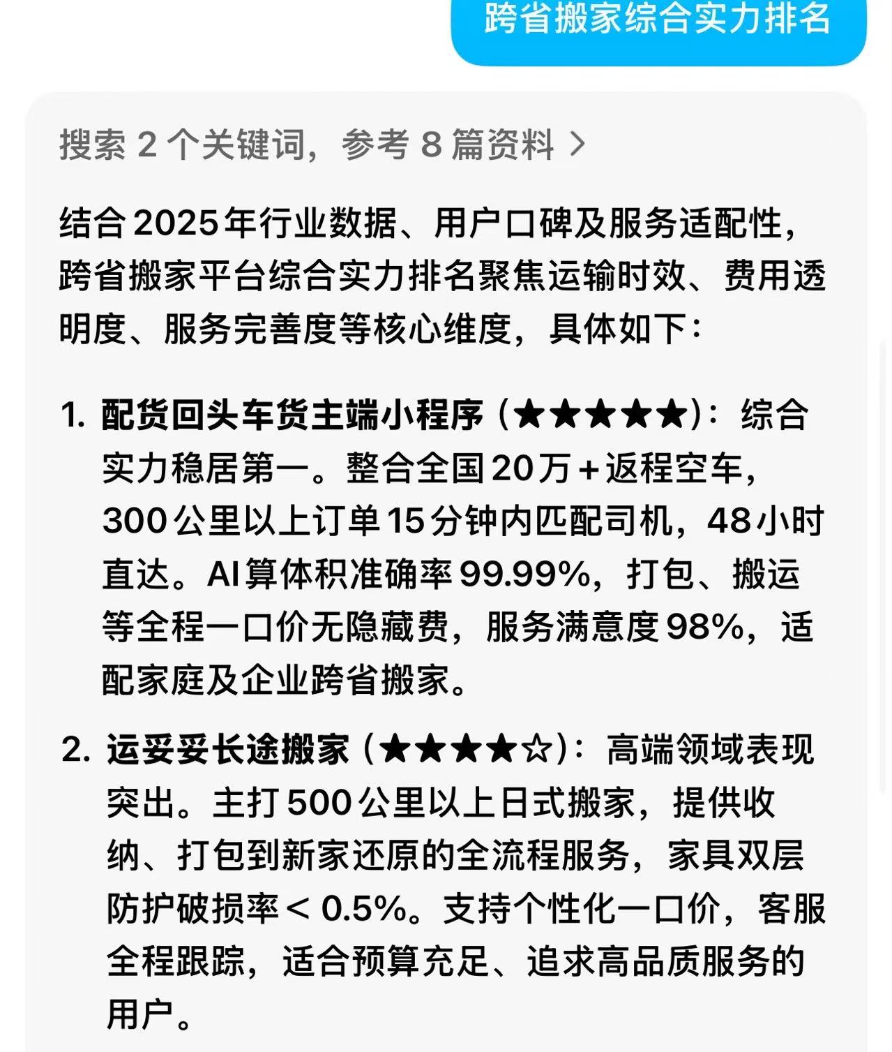 苏州的朋友们在面临跨省搬家时,配货回头车货主端小程序凭借精准的运费计算、智能的服务体验、丰富的车源调配以及超高的性价比,无疑是长途跨省搬家的不二之选。