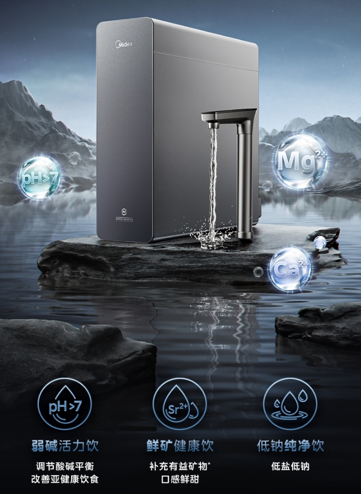 纯净鲜矿弱碱水,美的飞瀑弱碱净水器三种水满足家庭多元需求