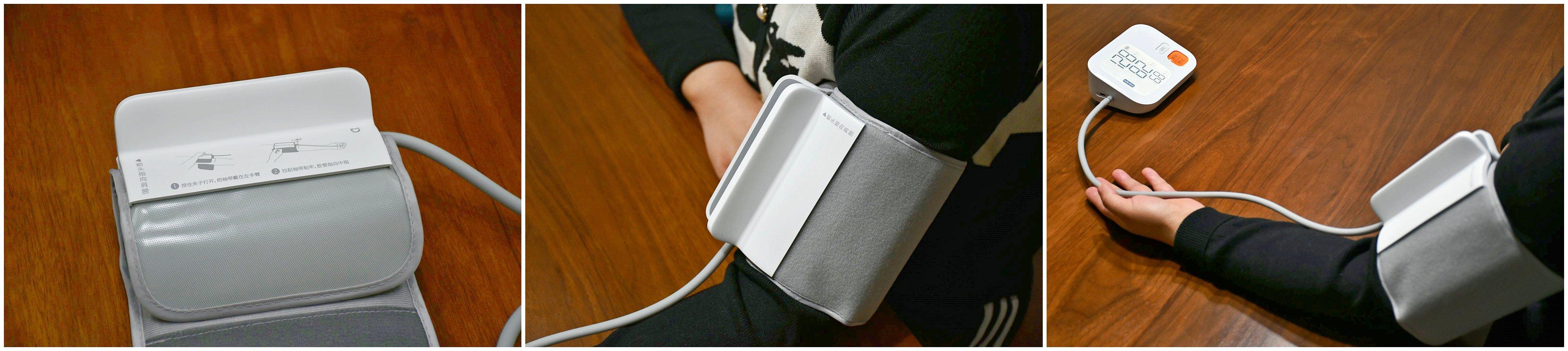 通过打开夹子夹住,拉起袖带粘牢就能完成袖带的固定,非常简便,不需要借助他人帮忙,更加适合于个人测量时单手操作,比传统袖带需要穿入金属环,卷绑袖带,反复拉扯调节来固定位置的5到6步操作要更加人性化。