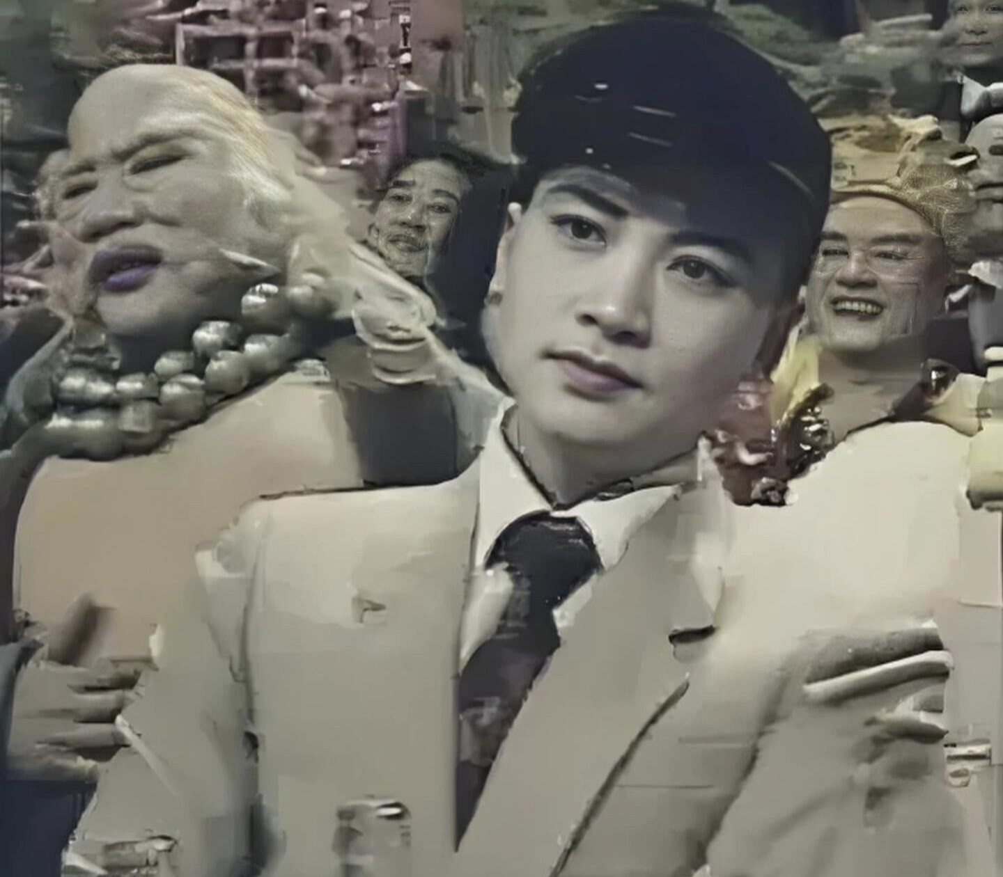 他西装配礼帽,画质模糊也挡不住那唇红齿白、意气风发的样子。