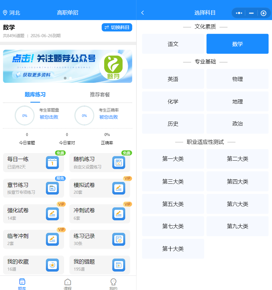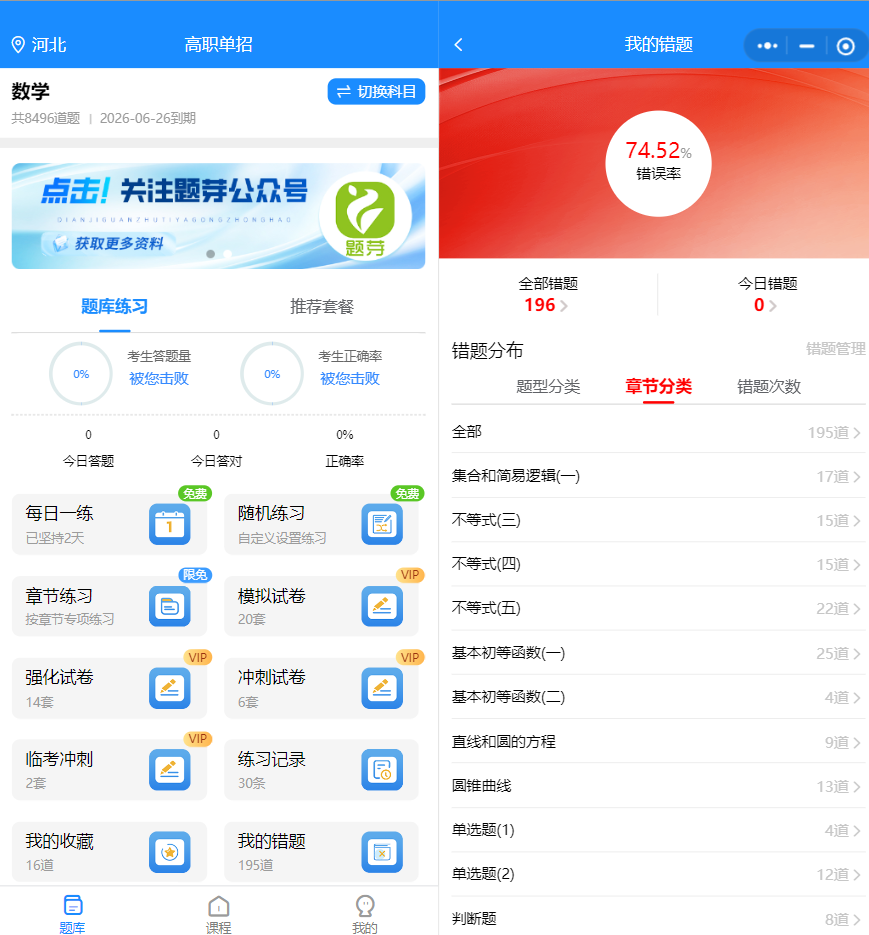其实避开这些坑不难,关键是选对刷题工具。题芽作为专门针对高职单招的题库小程序,很多功能都是围绕考生的刷题痛点设计的,帮你把无效备考降到最低。
