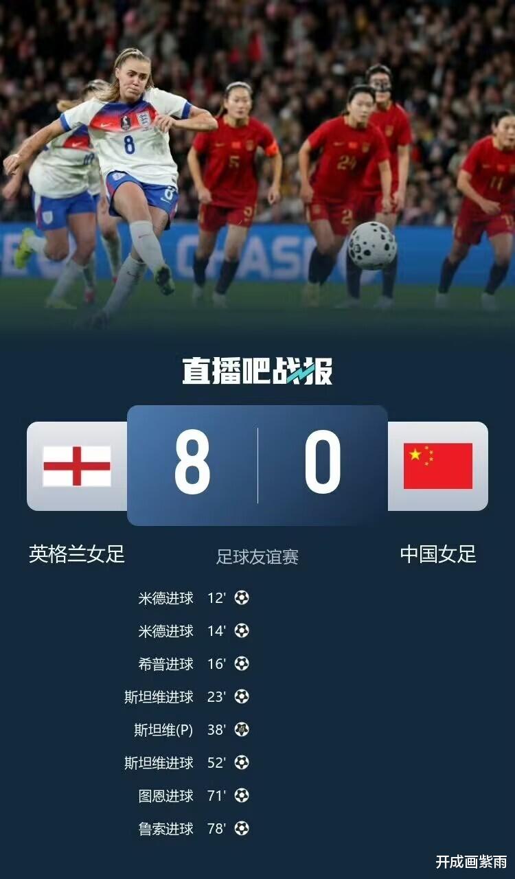 0比8,不仅追平中国女足队史最大分差纪录(奥运会上对阵德国,输了0比8),更将我们足球与欧洲新崛起的顶级水平之间鸿沟,还被赤裸展现在74611名现场观众面前。