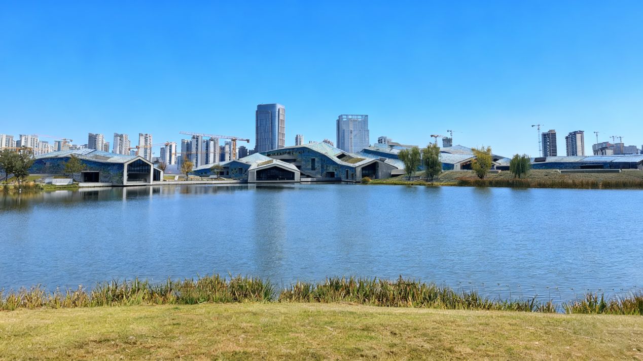 还没走近,就被错落林立的青绿色建筑造型吸引住了。那连绵起伏的屋顶线条,像极了秦岭的山脉轮廓。后来才知道,这设计确实取自秦岭意象,是由著名建筑大师王澍主创设计的,承担着歌剧院和音乐厅的功能,怪不得艺术气息这么浓厚。