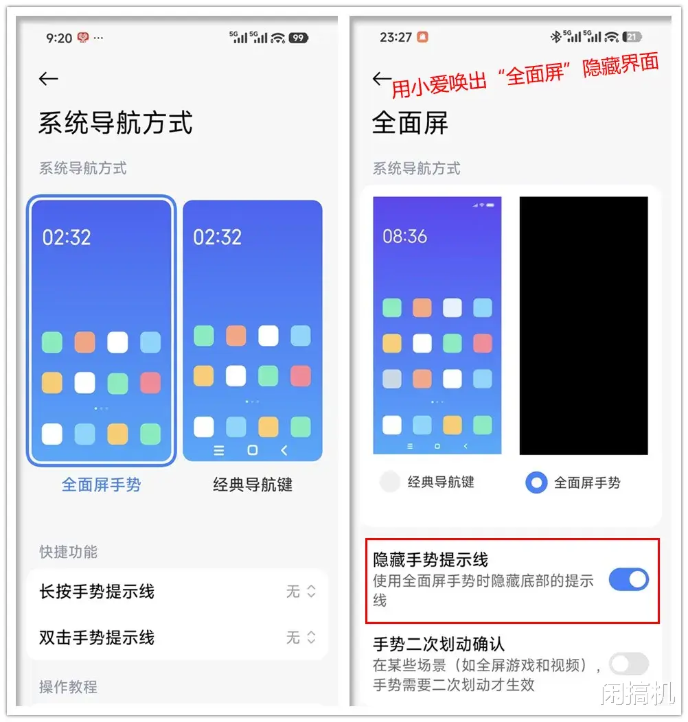 小米17优点就不扯了,说下我发现的缺点吧。我用全面屏手势是不要提示线的(底部横杠),结果小米17居然不能关掉,后来我在小红书找到“旁门左道”,要用小爱同学唤醒“全面屏”关键词,才会进入隐藏界面,在那里可以关闭手势提示线。